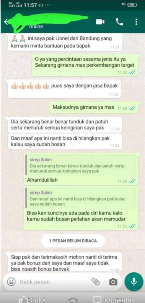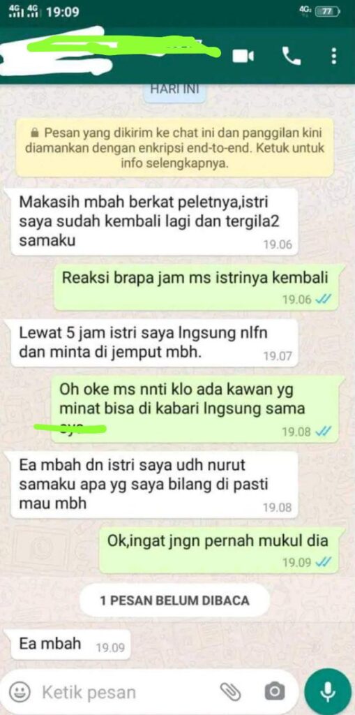 dengan pendekatan spiritual yang aman dan semua proses dilakukan secara privasi, niat baik, dan tanpa paksaan kehendak.